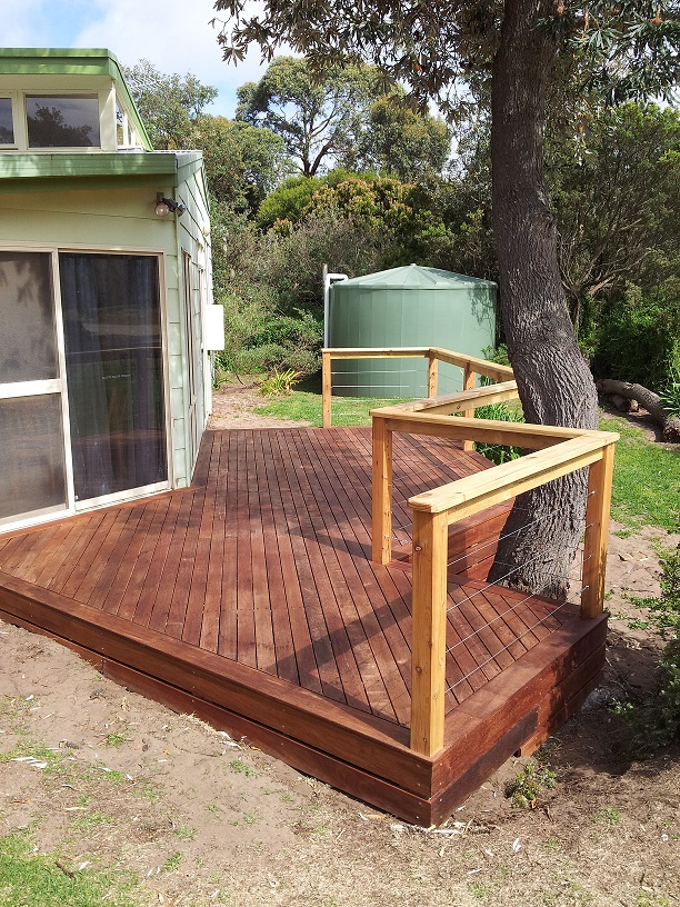 Thanks Mick for doing an outstanding job in building our new deck. Our holiday property is situated two hours drive out of Melbourne and it can be difficult finding a reliable tradesman locally. However, when we spoke to Mick, we were able to find a solution. He was happy to build the deck over a few weekends and kept driving to a minimum by staying at our property whilst doing the work. We handed over our design and the keys to the property and the finished deck is so much better than we imagined. Check out the photo (quiet beach retreat).